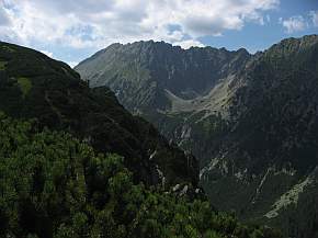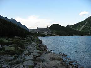 Unser Weg führte uns weiter über den Kepa (1683 m), weiter hinauf zum Swist. Roztocka (1706 m), um dann übern Swistowa Czuba (1768 m) zu unserem nächsten Ziel, der Chata Piec Stawow zu gelangen. Von hier oben hatten wir eine schöne Aussicht auf die Seenplatte und auf unser Ziel. |