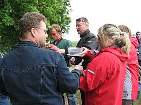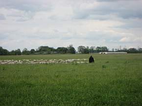 hatte Kuchen gebacken. Den gab es jetzt hier - hmmm - lecker. Wir entschlossen uns, nicht ganz um den See zu fahren. Der Weg war sehr gewöhnungsbedürftig. Es ging schon auf dem kurzen Stück halb übers Feld. Wer weiß, was uns andersrum erwartet hätte. Unterwegs sahen wir einen echten Schäfer mit seiner Herde |