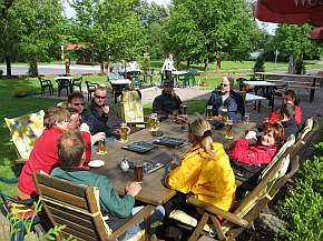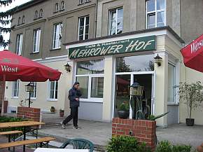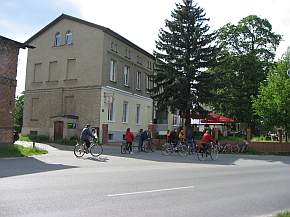 | Nach ca. 24 km kehrten wir in den Mehrower Hof ein. Bei guter Oldie-Musik ließen wir uns das Bier schmecken. | |