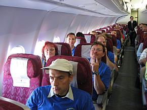 | Am 16.10.2006 war es endlich soweit. Unsere Gruppe setzte sich aus 7 Krauschwitzern und 3 Weißwasseranern zusammen. Die Reise begann 4.35 Uhr auf dem Bahnhof in Weißwasser. Mit einiger Verspätung startete der Airbus A330 um 15.55 Uhr vom Flughafen Frankfurt/M. Die Flugroute führte uns über Doha nach Kathmandu. Mit 2 h Startverspätung in Doha landeten wir 8:45 Uhr in KTM, wo wir von unserem Sherpa, Dawa Nurbu, und Arsun abgeholt wurden. | ||