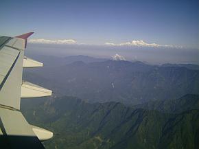 Anflug auf KTM konnte man die Berge das erste Mal sehen, nur saßen wir auf