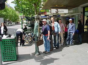| Das Stadtbild Melbournes wird von zahlreichen Bürohochhäusern beherrscht. Sehenswerte Bauwerke sind u. a. das State Parlament House, die Royal Exhibition Buildings, die Böse und die Saint Patrick's Cathedral. Ludi, Jörg und ich nutzten den Tag für eine Stadtbesichtigung entlang des "Golden Mile Heritage Trail, während die Anderen das Aquarium besuchten. | ||