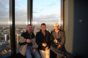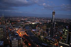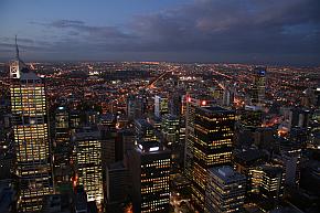 | Wir hatten das Glück, auf unsere Gruppenkarte noch einmal zum Sonnenuntergang auf das Observation Deck zu dürfen. Mit 253 m ist es das höchste Gebäude der Südhalbkugel. In nur 38 s erreichten wir die 55 Etage des Rialto-Towers - das Observation Deck. Gegen 19 Uhr konnten wir das "Feuerspiel" auf der anderen Flußseite von oben beobachten. Anschließend gingen wir in einem Malaisischen Restaurante in der King Street zu Abend essen. |
