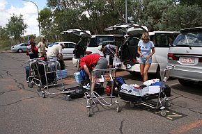 | Flughafen: Wieder zurück in Alice Springs war unser erster Tourabschnitt, Northern Territory zu Ende. Koffer packen, Mietwagen abgeben, einchecken und ab nach Adelaide, South Australia. |