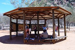 | Alice Springs - »The Alice« (27.000 Einwohner) nennen die Australier liebevoll die Stadt mitten im trockenen Red Centre, die im Zuge des Telegraphenbaus 1872 an einem Durchbruch der MacDonnell Ranges nahe einer Quelle gegründet wurde. | |